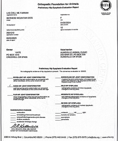 Hips OFA good normal, Elbows OFA good normal, cardiac clear, DM clear, VWD clear